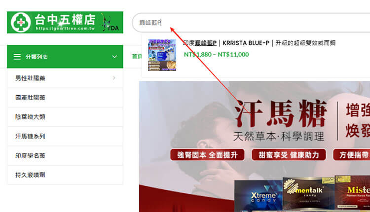 - 進入官方藥局網站:搜尋「巔峰藍P」商品頁面