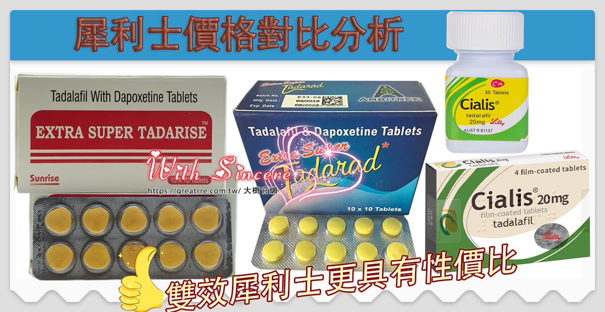 | 雙效犀利士 100mg | 1880元/1板(十顆) | 每顆含40mg他拉達非+60mg達泊西汀 | 需要助勃與增強持久力的男性 |