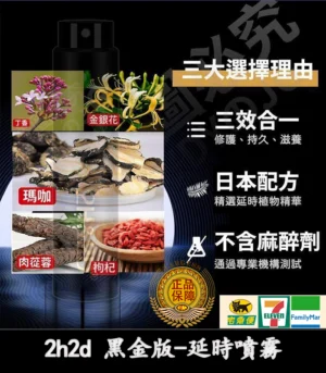 2H&2D持久液延時噴劑是日本排名第一的延時性用品,純綠色植物制成,