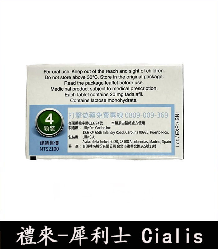 【產品名】犀利士/Cialis 20mg*4粒 他達拉非片(Tadalafil20mg)