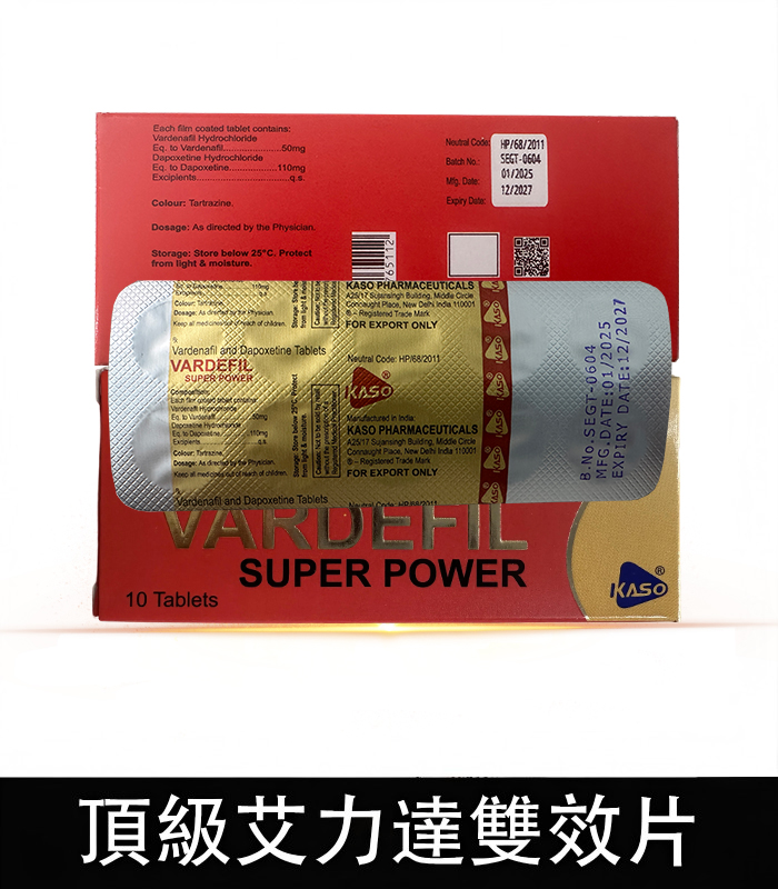 頂級艾力達 Vardefil Super Power 是專為解決男性勃起功能障礙(ED)與早洩(PE)問題設計的頂級雙效產品。這款藥物結合了兩大強效成分:伐地那非(Vardenafil)與達泊西汀(Dapoxetine),提供全方位的性愛表現提升,幫助您在性愛中表現得更持久、更堅挺,重新找回自信和激情。