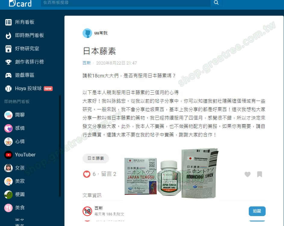 近期大樹藥局的醫師嚮大家介紹了一款名為日本藤素的壯陽藥。加上日本藤素在台灣地區又非常受歡迎,然而許多民眾又不知道在哪裡能買到正品日本藤素,紛紛在網路提問“日本藤素哪裡買”等問題。